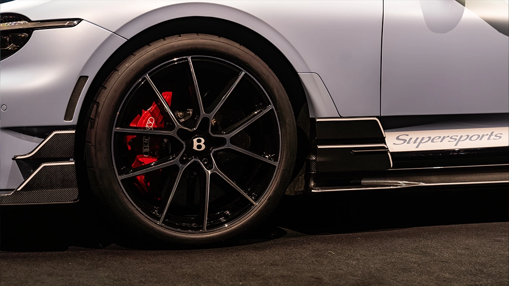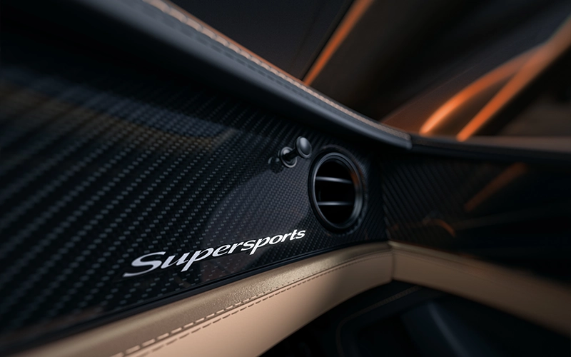 Embracing the fundamentals of precision engineering, the Bentley Supersports is a true enthusiast machine. Its beating heart is a non-hybrid variant of a strengthened 4.0-liter twin-turbocharged V8 with a stronger crankcase, enlarged cylinder heads, and massive turbochargers. In addition to 657 pulse-pounding horsepower, a ZF 8-speed dual-clutch transmission delivers exact control. An evocative soundtrack can be heard via its full-length titanium exhaust, developed in conjunction with Akrapovič. Unleash the full fury of the Supersports and you’ll rocket from 0-62 MPH in a remarkable 3.7 seconds on the way to a top track speed of 192 MPH. Drivers can use the standard Drive Dynamics Controller to personalize their experience using Touring, Bentley, and Sport drive mode settings. Since power is meaningless without control, the Bentley Supersports is equipped with the largest automotive braking system in the world – 440 mm Carbon-Silicon-Carbide (CSiC) discs on the front axle, 10-piston calipers, and 410 mm discs with four-piston calipers at the rear.